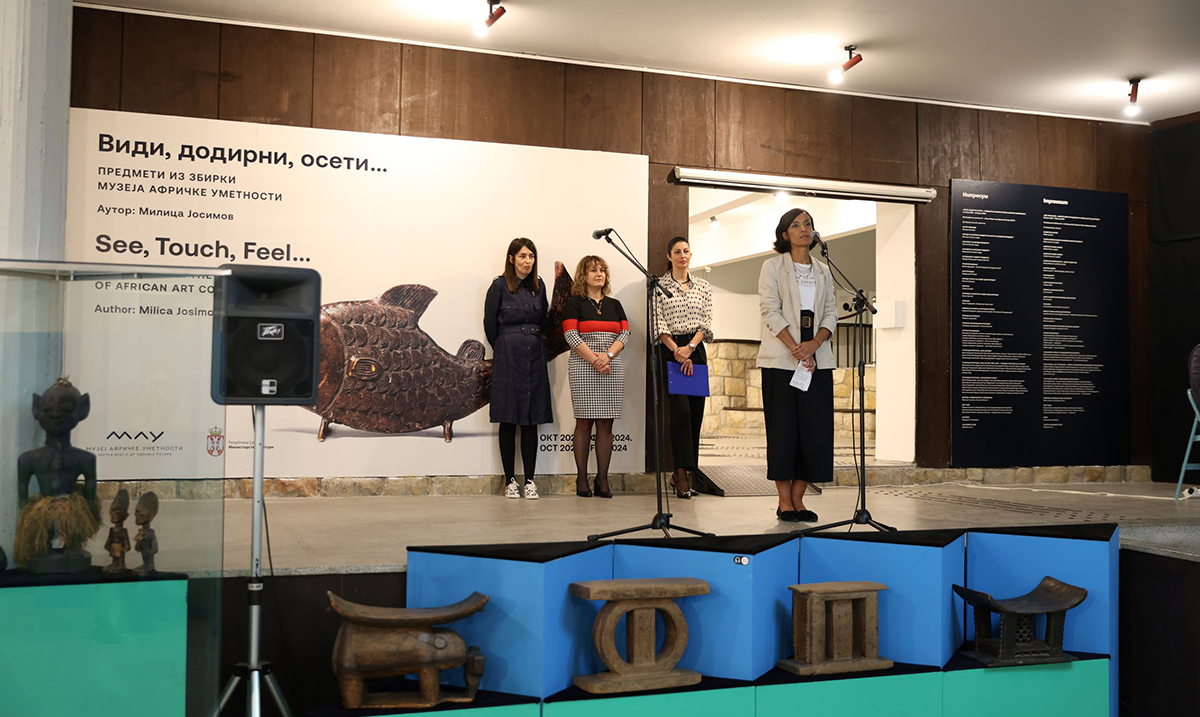 Na otvaranju izložbe prisutnima su se obratili Danijela Vanušić, pomoćnica ministra za kulturno nasleđe i digitalizaciju koja je zvačnično otvorila izložbu, Marija Aleksić, direktorka Muzeja afričke umetnosti, Milica Josimov, autorka izložbe i Jelena Vukić, direktorka škole za učenike oštećenog vida „Veljko Ramadanović”.