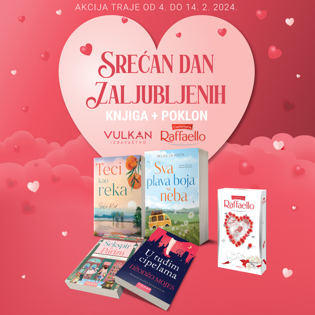Tradicionalno, povodom Dana zaljubljenih Vulkan je pripremio najlepše poklone za svoje čitaoce. Ne propustite priliku da dragoj osobi darujete jedno od najaktuelnijih izdanja Vulkan izdavaštva i neodoljivi kremasti desert sa bademom i kokosom. Praznična akcija traje do 14. februara, odnosno do isteka zaliha. U knjižarama Vulkan širom Srbije, kupovinom jednog od četiri najnovija romana Vulkan izdavaštva na poklon dobijate slatko iznenađenje – Raffaello slatkiš. Uronite u četiri uzbudljive priče…