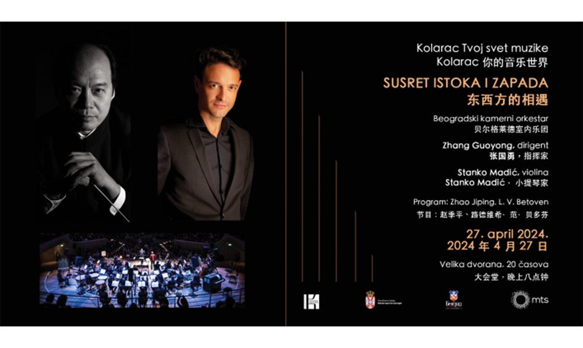 Koncert će biti prilika da na velikoj sceni Kolarca premijerno čujemo dela jednog od najistaknutijih kineskih kompozitora Džaoa Đipinga u izvođenju Beogradskog kamernog orkestra pod dirigentskom palicom Džanga Guojunga čije umeće uvek impresionira publiku i umetnike.