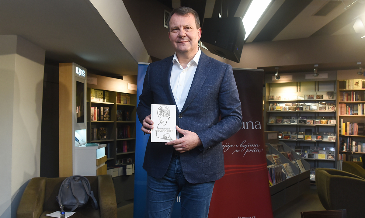 Mirović je pred brojnom publikom otkrio da odgovor na pitanje zašto mu je potrebna poezija, leži u potrebi za pobunom: „Počeo sam da pišem kao veoma mlad čovek. Prvi motivi bili su odraz mladalačke želje za pobunom, za nemirenjem sa stvarima i sa pojavama u našem okruženju, o čemu pišem i u novoj knjizi. ‘U lavirintu’ sam pokušao da dođem do te najskrivenije lože, sa pretpostavkom da se tamo nalazi hram antistvaraoca, naoružan željom da ga upoznam, ali i mačem da ga pozovem na obračun. Imao sam potrebu da napišem i nekoliko angažovanih pesama, o onome što se događa u Gazi, o licemerima, o rastućem uticaju bahatosti u svetu i Evropi, onoj o kojoj je pisao i Dragoš Kalajić. U tom susretu sa antistvaraocem sam zapravo želeo da potvrdim svoje sumnje, svoje strahove i da pokušam da ponađem i put za sebe, svoja promišljanja, u autokritičnom tonu, što danas nije čest slučaj.“