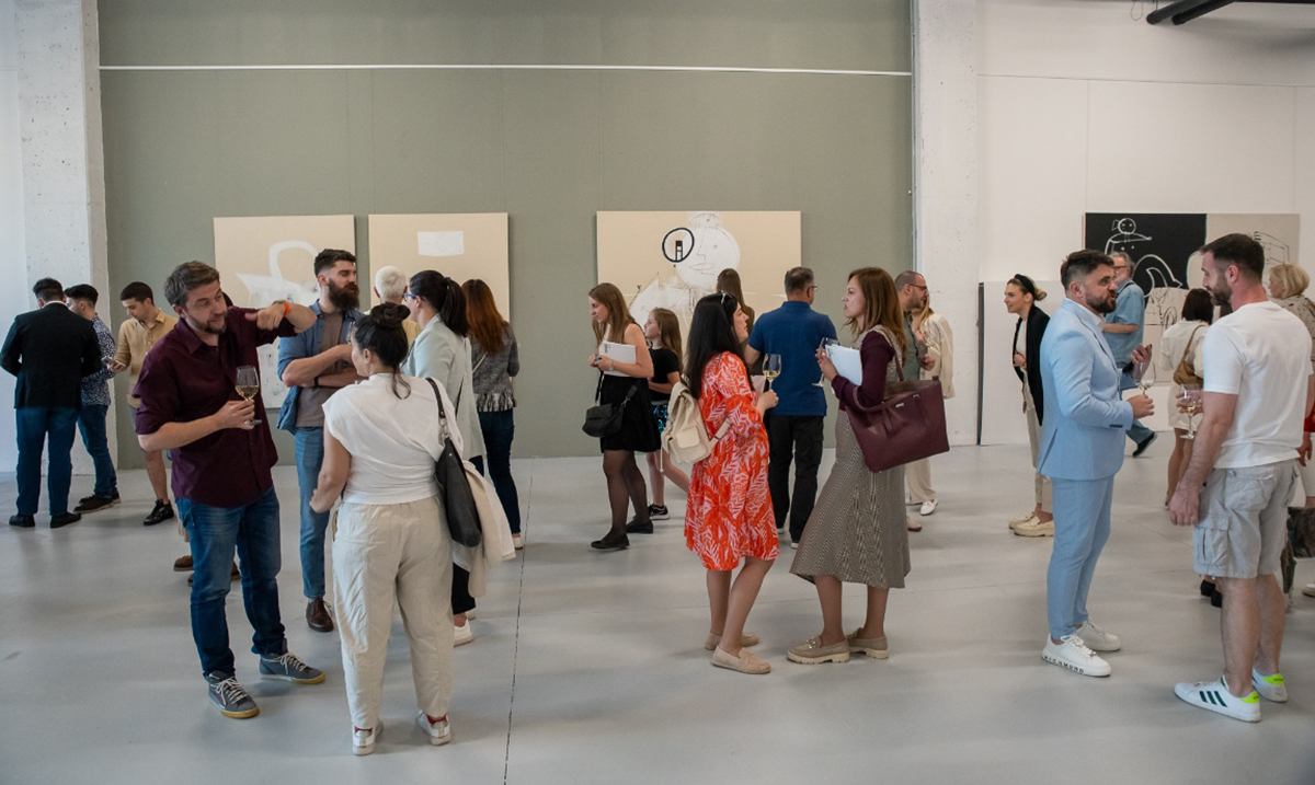 Sve slike na izložbi su velikog formata, na kojima su dominantni odnos crne i bele, sa ubačenim površinama žute, narandžasto-crvene, oker, kao i akcentirajući potezi plave boje.