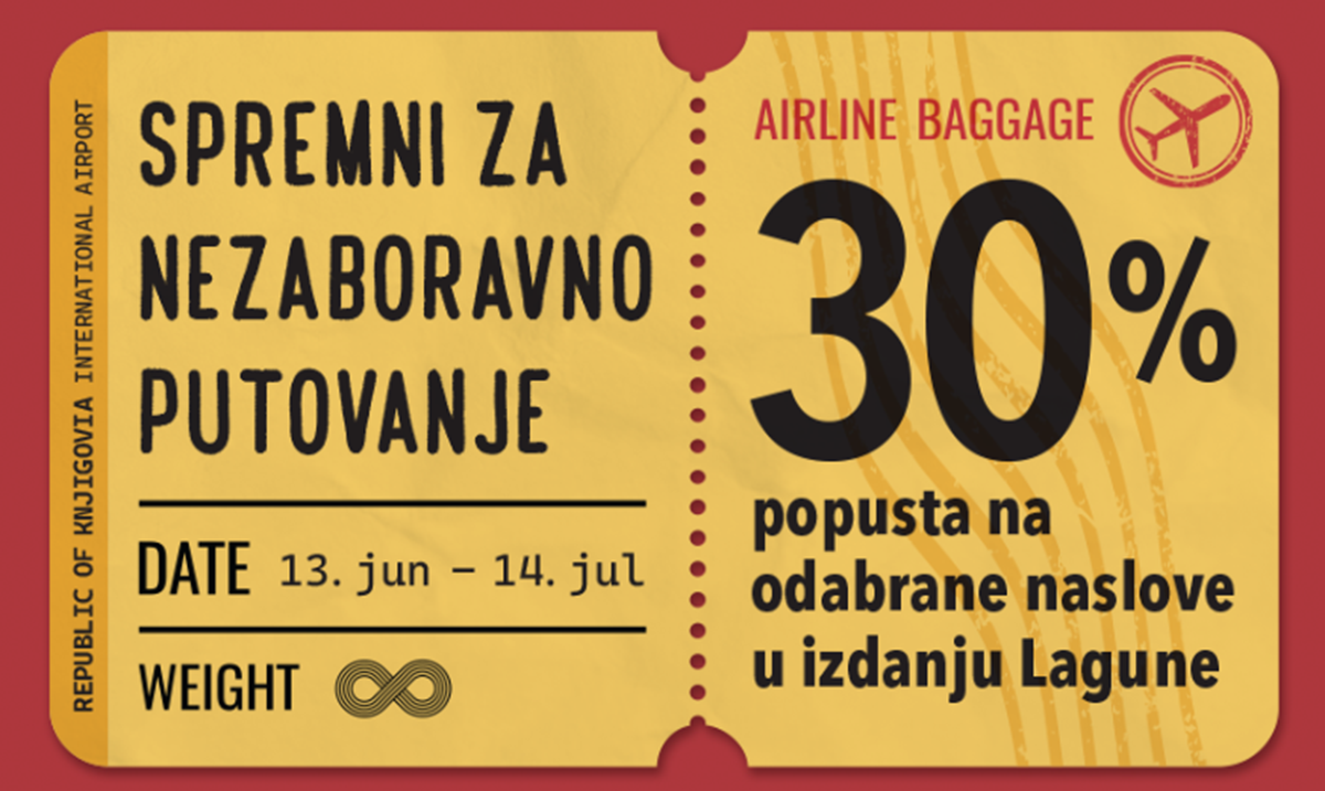 Leto samo što nije, a to znači samo jedno – odmor! Kako biste se što bolje pripremili i proveli nezaboravno letovanje na omiljenim destinacijama, u svim Delfi knjižarama, kao i na sajtovima laguna.rs i delfi.rs, počinje akcija „Spremni za nezaboravno putovanje“, koja će trajati od 13. juna do 14. jula, tokom koje ćete moći da na popustu od 30% nabavite odabrane naslove u izdanju Lagune i domaćih izdavača, kao i na odabrane vodiče i putopise na engleskom jeziku.