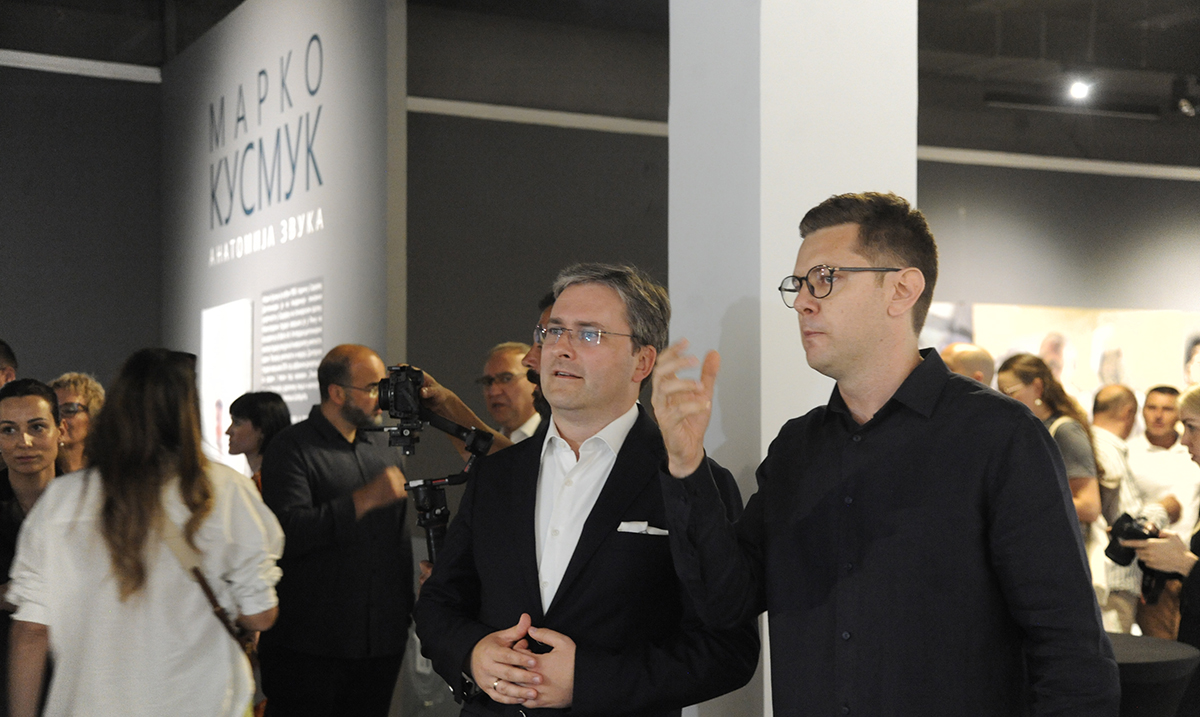 Salon Muzeja grada je bio mali da primi sve zainteresovane koji su želeli prvi da vide izložbu, a podršku izuzetnom umetniku su dali i ministar kulture Nikola Selaković, Nele Karajlić, Nada Topčagić i mnogi drugi. O saradnji sa Kusmukom i njegovim delima na otvaranju su govorili viši kustos Muzeja grada Predrag Đidić, istoričarka umetnosti Milica Grujić, a umetnik Marko Kusmuk je rekao: “Anatomija zvuka je dubinsko istraživanje načina na koji ljudi doživljavaju svet kroz auditivnu i vizuelnu percepciju. Ona potiče posmatrače da razmišljaju o tome kako se naše čulo sluha, vid i ostala čula kombinuju u našem umu, stvarajući kompleksne i subjektivne interpretacije stvarnosti. Ovo istraživanje se fokusira na to kako naš um obrađuje te podražaje, stvarajući duboke odjeke naših životnih iskustava, koji su svojevrsni odraz naše percepcije sveta.”