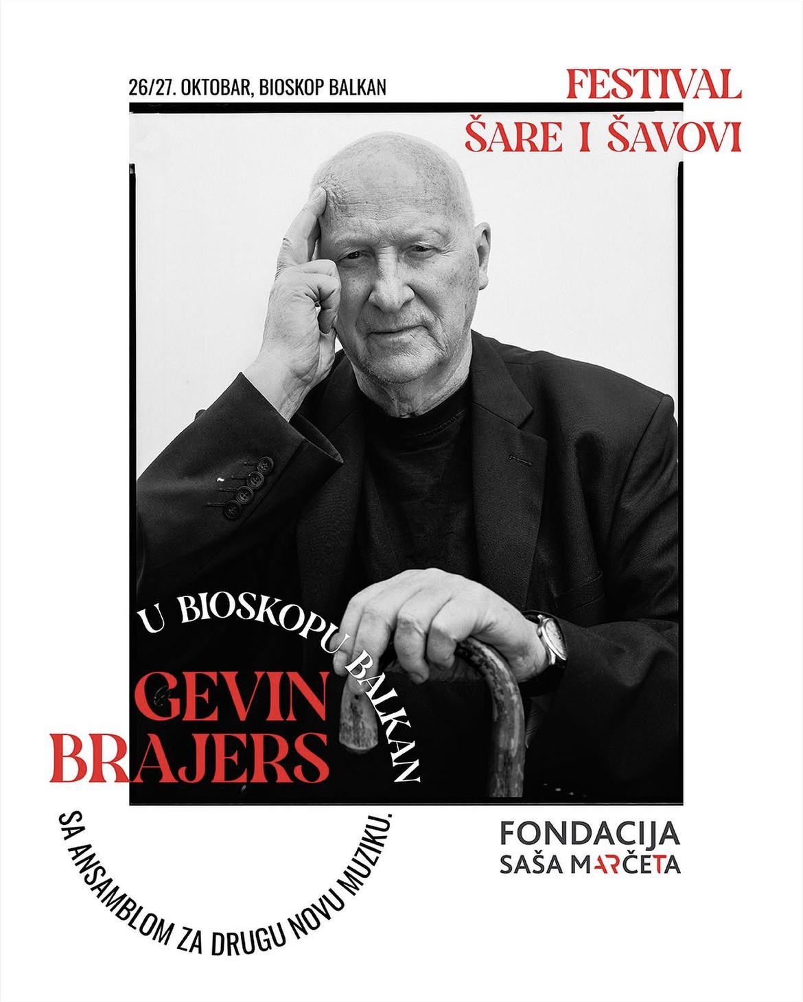 Festival, koji je prošle godine održan u Beogradu, Novom Sadu i Zrenjaninu, ove godine donosi poseban fokus na stvaralaštvo legendarnog britanskog kompozitora Gevina Brajersa. Brajers, rođen 1943. godine, istakao se kao jedan od pionira minimalističke muzike u Evropi. Njegova dela poput “Potonuće Titanika” (The Sinking of the Titanic) iz 1969. godine i “Isusova krv me još nikada nije izneverila” (Jesus’s Blood Never Failed Me Yet) iz 1971. godine stekla su kultni status i često su izvođena širom sveta. Brajersova umetnička karijera obuhvata širok spektar muzičkih žanrova, od džeza i slobodne improvizacije do avangardne i eksperimentalne muzike. Tokom svoje karijere sarađivao je sa umetnicima kao što su Brajan Eno, Tom Vejts i Čarli Hejden, čime je dodatno učvrstio svoj status u svetu savremene umetničke muzike.