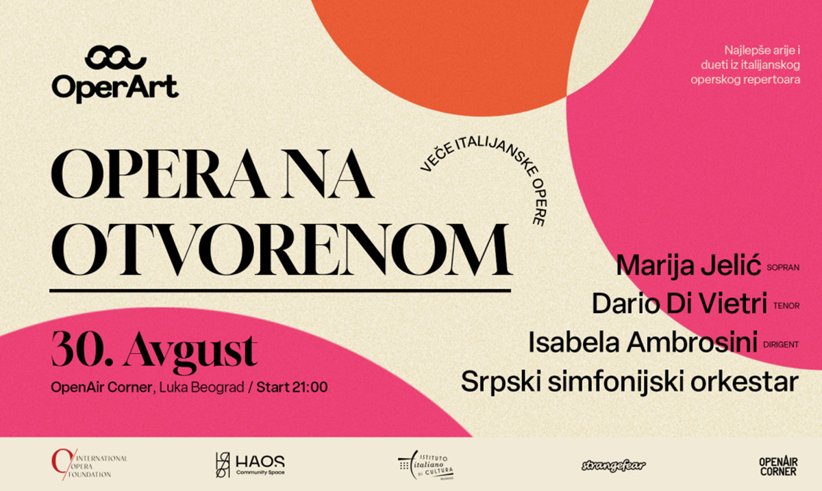 Koncert “Opera na otvorenom” organizuju Internacionalna operska fondacija, Strangefear, OpenAir Corner, Haos Community Space uz podršku Italijanskog instituta za kulturu u Beogradu.