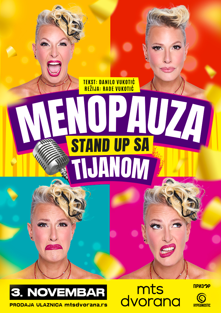 Nov i potpuno autentičan stand up sa Tijanom Dapčević pod nazivom „Menopauza“ biće premijerno izveden 03. novembra u mts Dvorani. Urnebesna monodrama, koja otvara sve teme koje žene obično šapuću – ali sada ih govore glasno, duhovito i bez stida- nastala je po tekstu Danila Vukotića, dok predstavu režira Rade Vukotić.