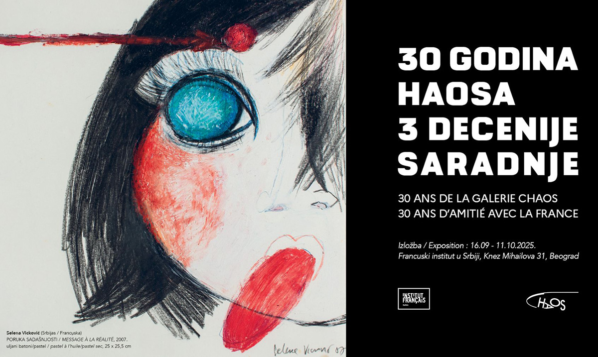 Francuski institut u Srbiji pridružuje se obeležavanju jubileja Galerije Haos povodom 30 godina rada i uspešne saradnje tako što u svom prostoru organizuje izložbu 39 autora sa francuskim državljanstvom koji su tokom tri decenije izlagali u prostoru Galerije Haos.