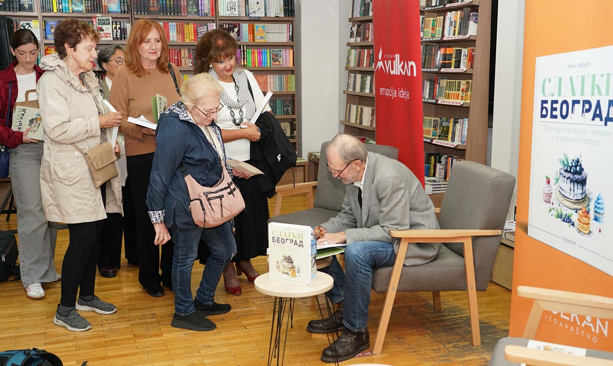 Izuzetna posećenost, inspirativni razgovor, prigodna muzika, horsko pevanje i degustacija Kalemegdan šnit torte obeležili su promociju knjige Slatki Beograd: Vodič kroz istoriju slatkiša u modernom Beogradu, autora Jova Anđića, održanu sinoć u Vulkan knjižari u centru Beograda.
