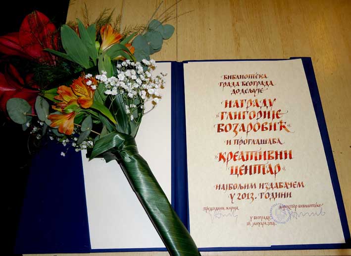 Nagrada Gligorije Vozarović dodeljena je Kreativnom centru i pre 7 godina – kao najboljem izdavaču u 2006. godini.
