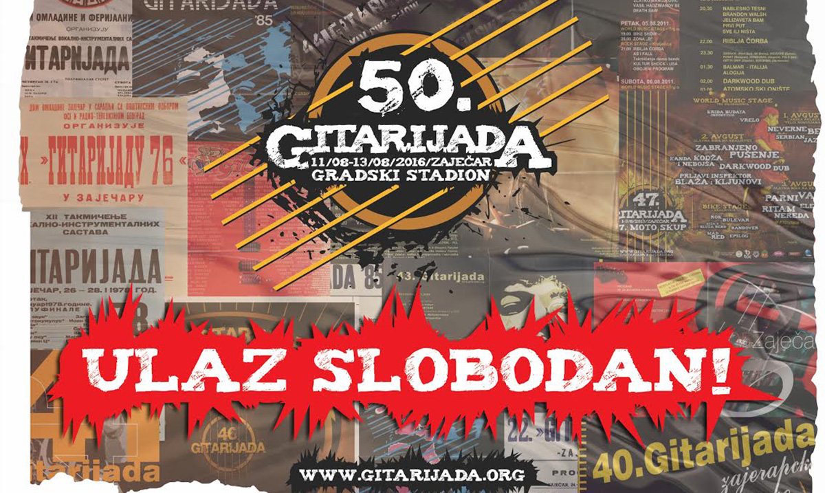 Sinoć je u Zaječaru počeo trodnevni prateći programa 50. Gitarijade – COUNTDOWN 2016. koji će trajati do početka najveće rok manifestacije na Balkanu. Tokom koncerata koji će se održavati do početka glavnog dela programa sviraće pobednici sa ranijih Gitarijada i prijatelji festivala – bendovi i muzičari koji su proteklih godina gostovali u Zaječaru.