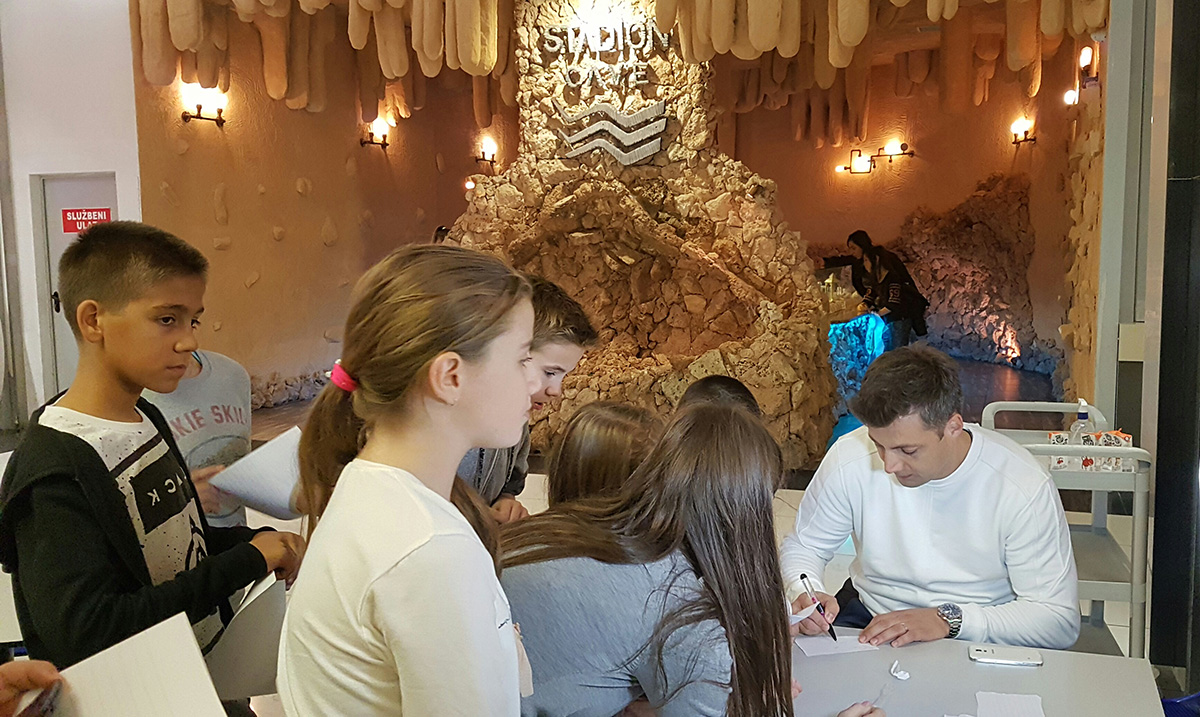 Uz slasne đakonije i pikanterije, Bojan i klinci nastavili su ćaskanje, a nakon što su dobili i autograme, rastali su se zadovoljni i sa osmesima.