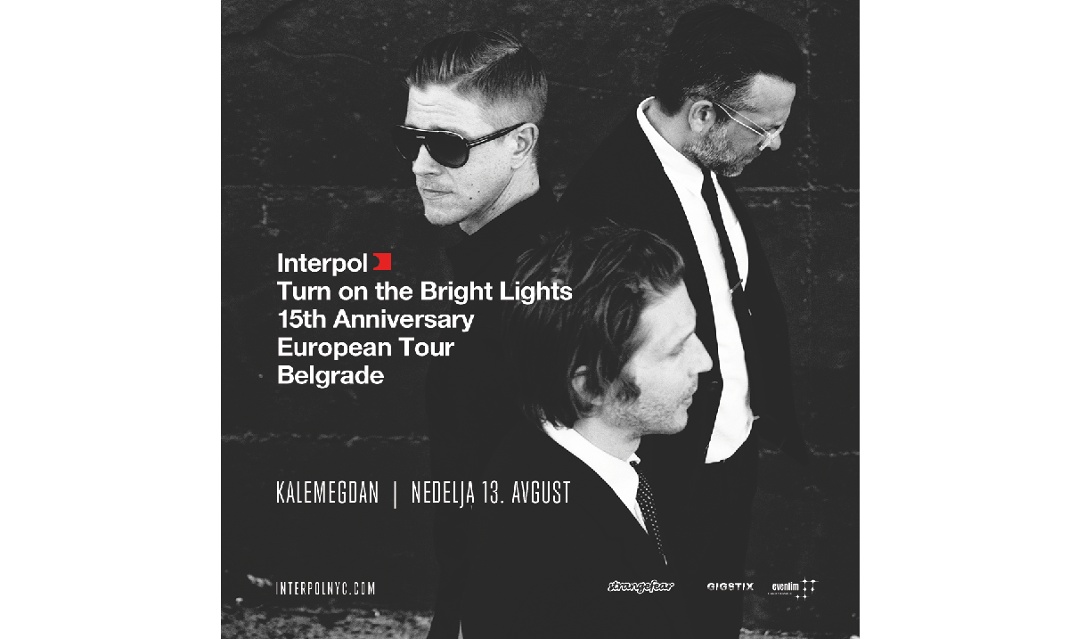 Interpol će prvi put nastupiti pred publikom u Srbiji, u okviru velike letnje turneje kojom će obeležiti 15 godina od izlaska debi izdanja „Turn On The Bright Lights“. Na koncertu na Kalemegdanu rok trio iz Njujorka izvešće sve pesme sa albuma prvenca, pa će publika moći uživo da čuje hitove poput „Untitled“, „PDA“, „Obsticle 1“, „Say Hello To The Angels“ i mnoge druge.