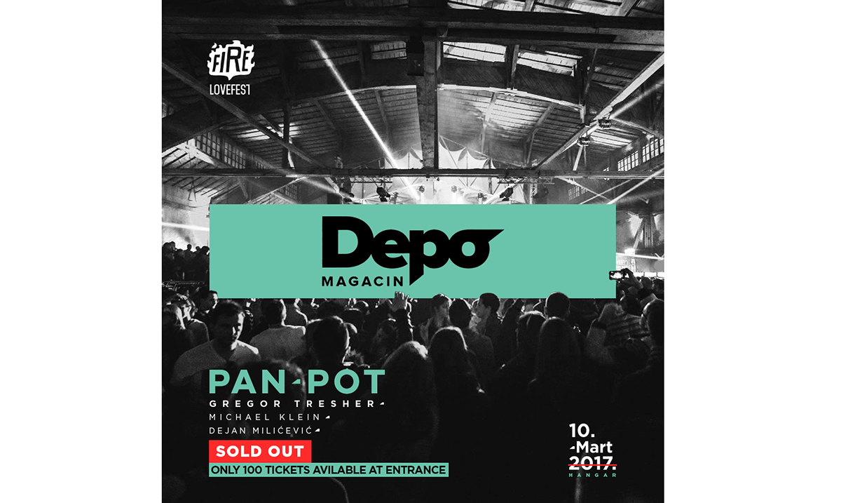 Lovefest Fire, dugo očekivano beogradsko izdanje festivala ljubavi, biće održan 10. marta u Magacinu Depo (Travnička 3), a do promene lokacije došlo je zbog velikog interesovanja posetilaca. Zvezde večeri biće nemački duo Pan-Pot, kao i Gregor Tresher i Michael Klein, a domaća podrška ovog puta je Dejan Milićević.