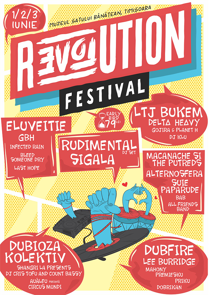 Još samo dva dana deli nas od spektakla u Temišvaru. Pogledajte satnicu, odaberete omiljene izvođače i napravite svoj plan za treće izdanje Revolution festivala! Naoružajte se energijom i ne propustite pravo festivalsko iskustvo koje će trajati 72 sata bez prestanka u Muzeju sela u Temišvaru!