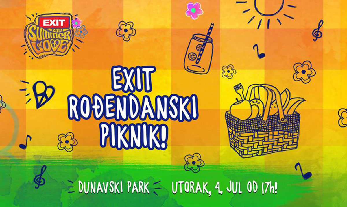 Dan uoči nultog dana festivala, u utorak, 4. jula od 17h u Dunavskom parku u Novom Sadu EXIT će organizovati popodnevni piknik kojim će najaviti pet dana novosadskog izdanja EXIT Leta ljubavi 2017! Srđan Šveljo, poznatiji kao DJ Fanatik spremio je specijalni DJ set u hipi duhu iz 60-ih i 70-ih godina, a u parku ćemo slušati i specijalni repertorar akustičnog dueta The Wizards, koji čine gitarista Ognjen Protić i pevač Petar Živković. Svi Novosađani, posetioci festivala, turisti i putnici namernici su pozvani, uključujući i one najmlađe za koje će biti pripremljen poseban program sa animatorima, a veliko finale Exitovog piknika biće obeleženo prelepim vodenim hologramom iznad jezera! Posetioce očekuju osveženja i grickalice, posebna relaks zona u vidu zvučne kupke s planetarnim gongovima, kao i mnogobrojni pokloni, te se svima savetuje da ponesu ćebad, korpe za piknik, frizbije, lopte i pridruže se druženju na otvorenom!