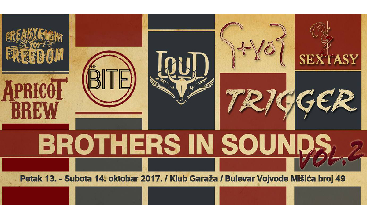 Udruženi underground autorski bendovi okupljeni pod imenom Brothers in Sounds, organizuju drugi po redu istoimeni festival 13. i 14. oktobra. Festival „Brothers in Sounds Fest Vol. 2“ održaće se u umetničkom centru „Garaža“ u Bulevaru Vojvode Mišića 49, prekoputa Beogradskog sajma.