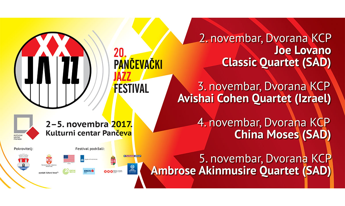 Jubilarno, dvadeseto izdanje Pančevačkog Jazz Festivala održaće od 2-5. novembra u Kulturnom centru Pančeva. U okviru glavnog festivalskog programa nastupiće zvezde svetskog, evropskog i domaćeg džeza, među kojima i Joe Lovano, Tim Bern, Avishai Cohen, China Moses drugi.