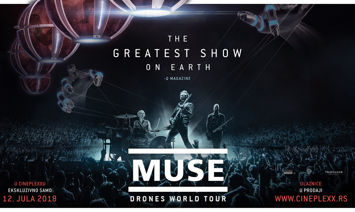 Višestruko nagrađivani bend Muse stiže 12.jula od 20 časova na veliko platno bioskopa Cineplexx u spektakularnom koncertnom filmu „Drones World Tour“.  Karte za koncertni film benda, koji je poznat po energičnim živim nastupima i činjenici da svaki put pomere granice scenskog dizajna, su u prodaji na blagajnama bioskopaCineplexx UŠĆE Shopping Center, Kragujevac Plaza i Cineplexx Niš.