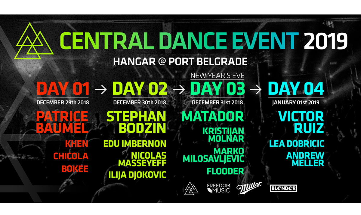 Ljubitelji elektronske muzike će u okviru šestog izdanja Central Dance Event novogodišnjeg festivala imati prilike da uživaju u nastupima svetskih zvezda klupske scene, kao i najboljih i najtraženijih domaćih izvođača, visoko kvalitetnoj audio-vizuelnoj produkciji, vrhunskoj zabavi i nezaboravnom provodu.