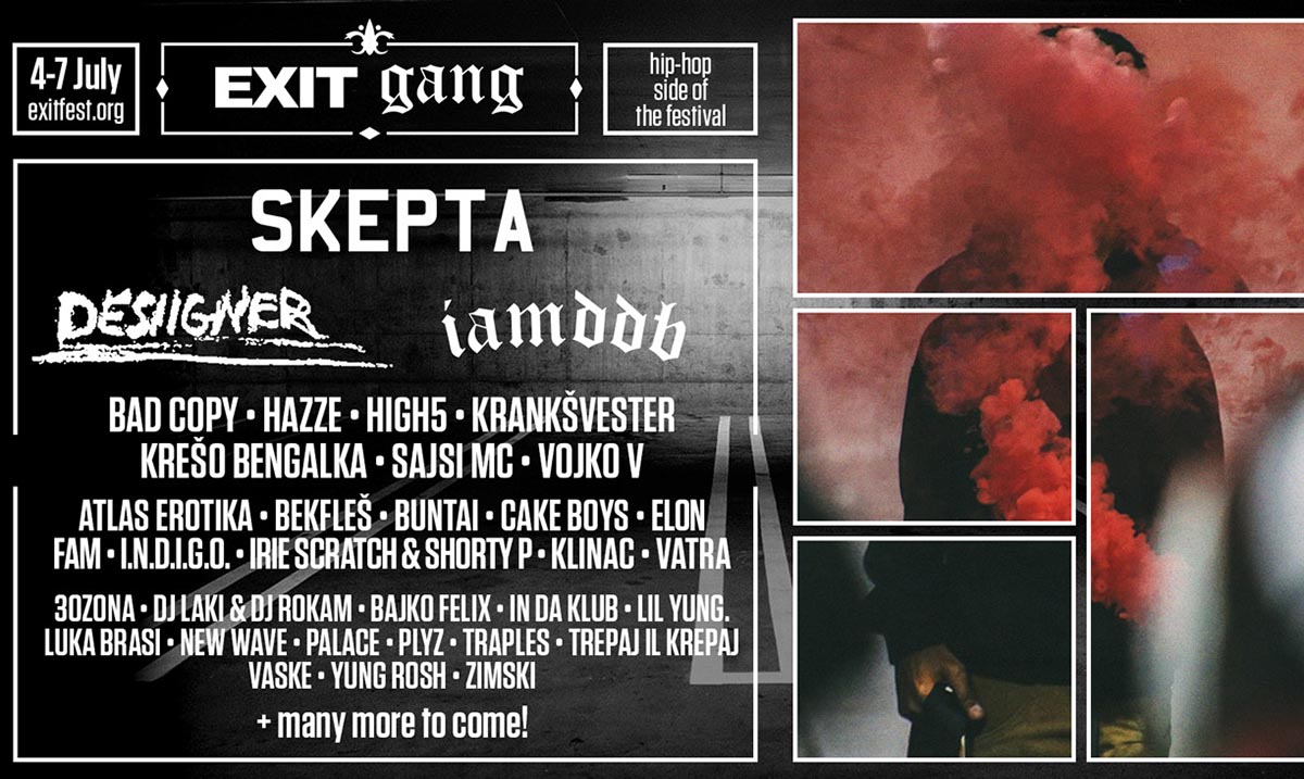 Nakon niza udarnih gitarskih bendova i najvećih zvezda elektronske muzike, EXIT će ovog leta okupiti i najveće hip-hop pleme uz dovoljno imena da proglase festival ovog muzičkog žanra na tvrđavi od 4. do 7. jula! Ovu postavu predvodiće britanski kralj rima, reper i aktivista Skepta, jedini MC koji je londonski zvuk ulice uspeo da popularizuje u Americi, što je potvrdio i planetarni megahit „Praise the Lord“ koji je snimio sa A$AP Rockijem. Među njegovim fanovima javno su deklarisane brojne poznate ličnosti kao što su Mick Jagger sa kojim je radio zajednički singl ili Drake koji je istetovirao inicijale Skeptine izdavačke kuće “Boy Better Know”! Višestrukog dobitnika BRIT, BET, Mercury, MOBO i NME nagrada izuzetno cene i Pharrell Williams koji mu je producirao hit album „Konnichiwa“, te Naomi Campbell sa kojom je bio u vezi. Sa britanskog ostrva stiže i fenomenalna IAMDDB, koju je i moćni BBC pozicionirao na listu izvođača čiji je zvuk obeležio prethodnu godinu, dok su njeni trap-jazz bengeri „Shade“, „Drippy“ i „Kurr£ncy“, danas neizostavni na najboljim hip-hop i RnB žurkama. Za veliko nedeljno finale na glavnoj bini pobrinuće se uživo besprekorni Desiigner, tvorac najzaraznije hip-hop pesme u ovoj deceniji „Panda“, koja je dospela na sam vrh američke top liste i do danas izbrojala čak 1,3 milijarde YouTube pregleda!
