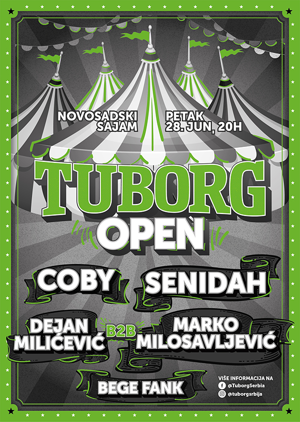 U petak 28. juna na Novosadskom sajmu Tuborg pravi svoj veliki OPEN koncert okupljanjem regionalnih zvezda – za dobro zagrevanje zadužen je DJ Bege Fank, nakon njega nastupaju Coby i Senidah, a za ljubitelje kvalitetnog after-a, za DJ pultom će se naći Dejan Milićević back2back Marko Milosavljević.