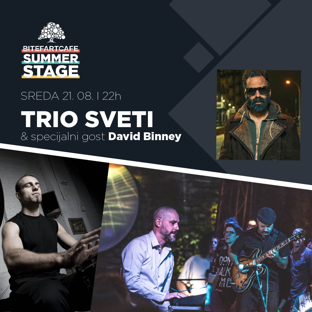 Trio Sveti koji čine bubnjar Marko Đorđević, klavijaturista Vasil Hadžimanov i gitarista Branko Trijić nastupiće tradicionalno 21. avgusta od 22 časa na letnjoj sceni Bitefartcafea na Kalemegdanu. Ovog puta virtuozni muzički sastav nastupiće u pratnji specijalnog gosta, američkog saksofoniste Dejvida Binija.