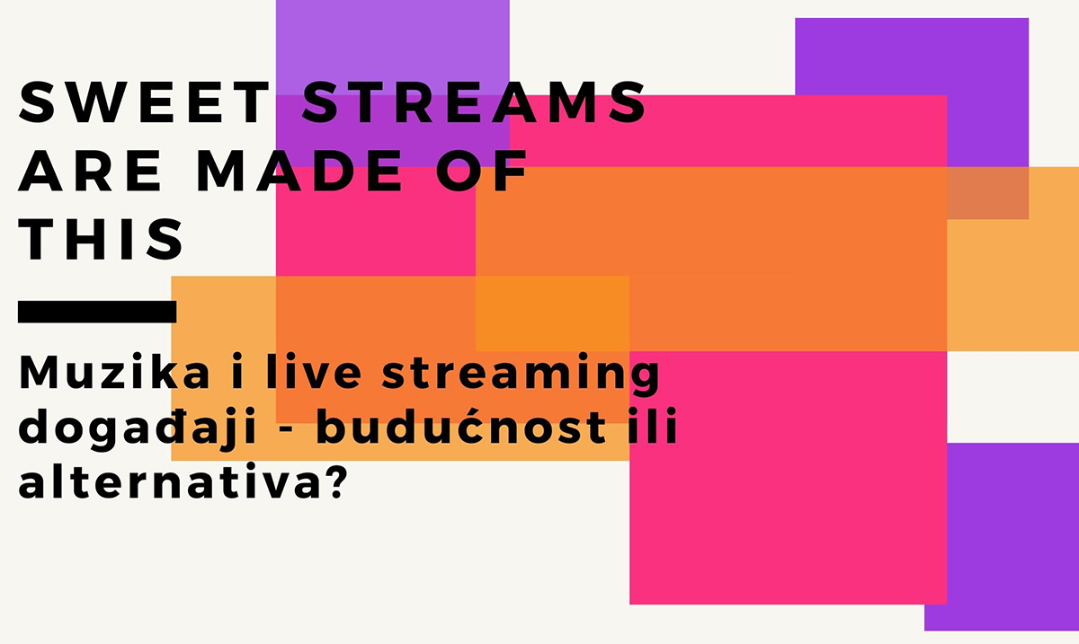 Muzička industrija je jedna od onih koje su teško pogođene trenutnom situacijom koja je izazvana pandemijom. Neizvesno je kada će masovna okupljanja ponovo biti dozvoljenja, a samim tim i koncerti, klupski i festivalski nastupi. Time je dovedeno u pitanje stotine hiljada radnih mesta širom sveta. Najveći izvor prihoda muzičarima jesu njihovi nastupi, ali nisu samo oni ti koji su krizom pogođeni – tu je čitav lanac radnika u ovoj industriji koji stoje „iza bine“. Na panelu „Sweet Streams Are Made of This“ učesnici će razgovarati o tome kako će u budućnosti izgledati koncerti, koje su prednosti live-streaminga i na koje načine možemo da pružimo podršku muzičarima u predstojećem periodu.
