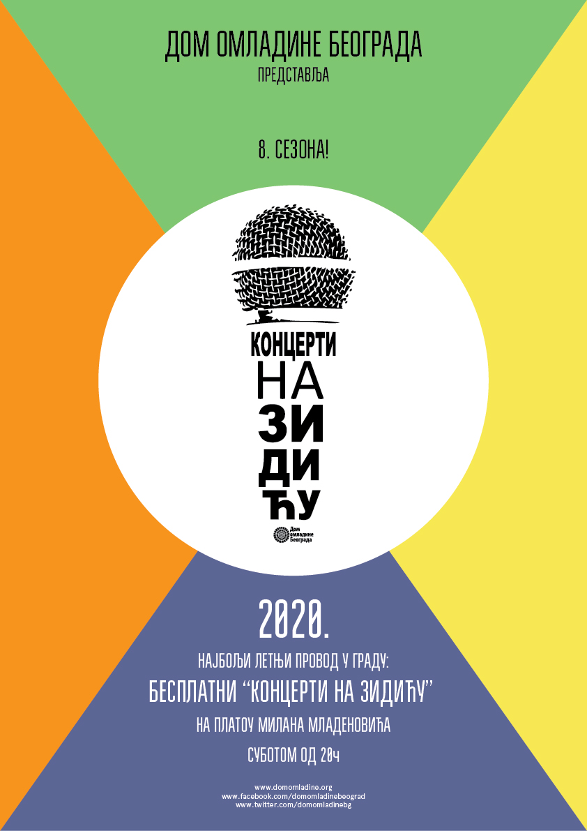 Koncerti na Zidiću, koje Dom omladine Beograda od 2013. godine organizuje na Platou Milana Mladenovića, postali su jedan od omiljenih letnjih kulturnih programa za sve Beograđane i goste našeg glavnog grada. U osmoj sezoni, nastavljamo da svake subote, od 20. juna do kraja avgusta, na otvorenoj sceni otkrivamo nove bendove i predstavljamo neke stare muzičke znance.
