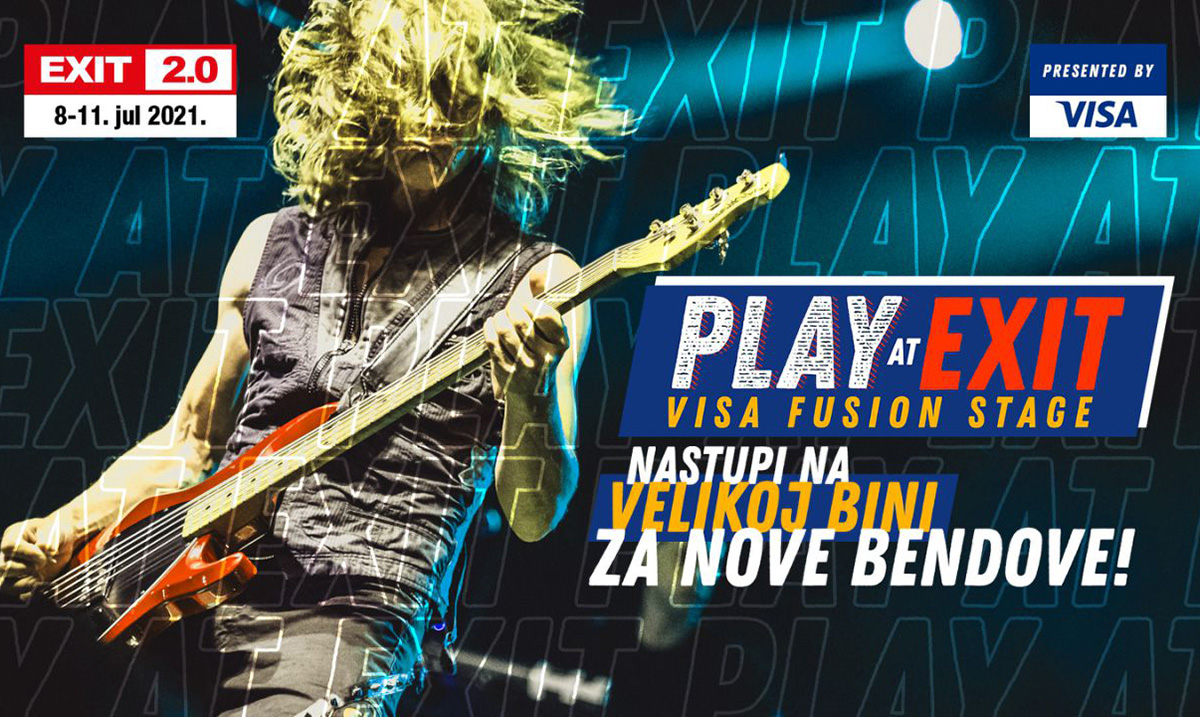 EXIT i Visa otvaraju konkurs Play @ EXIT  za izbor četiri nova autorska benda ili izvođača koji će nastupiti na Visa Fusion bini, od 8. do 11. jula u sklopu velike proslave dve decenije festivala.