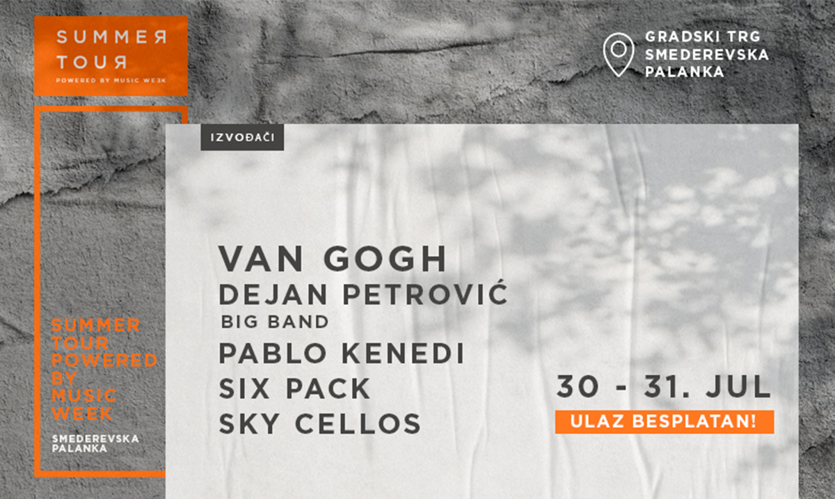 Festival Music Week prethodnih godina osvojio je srca posetilaca Kopaonika, kao i stanovnika i gostiju Beograda, a ove godine kreće na turneju po Srbiji! Omiljeni festival popularne muzike obilaziće ovog leta različite gradove, a prva stanica Music Week Tour-a je u Smederevskoj Palanci.
