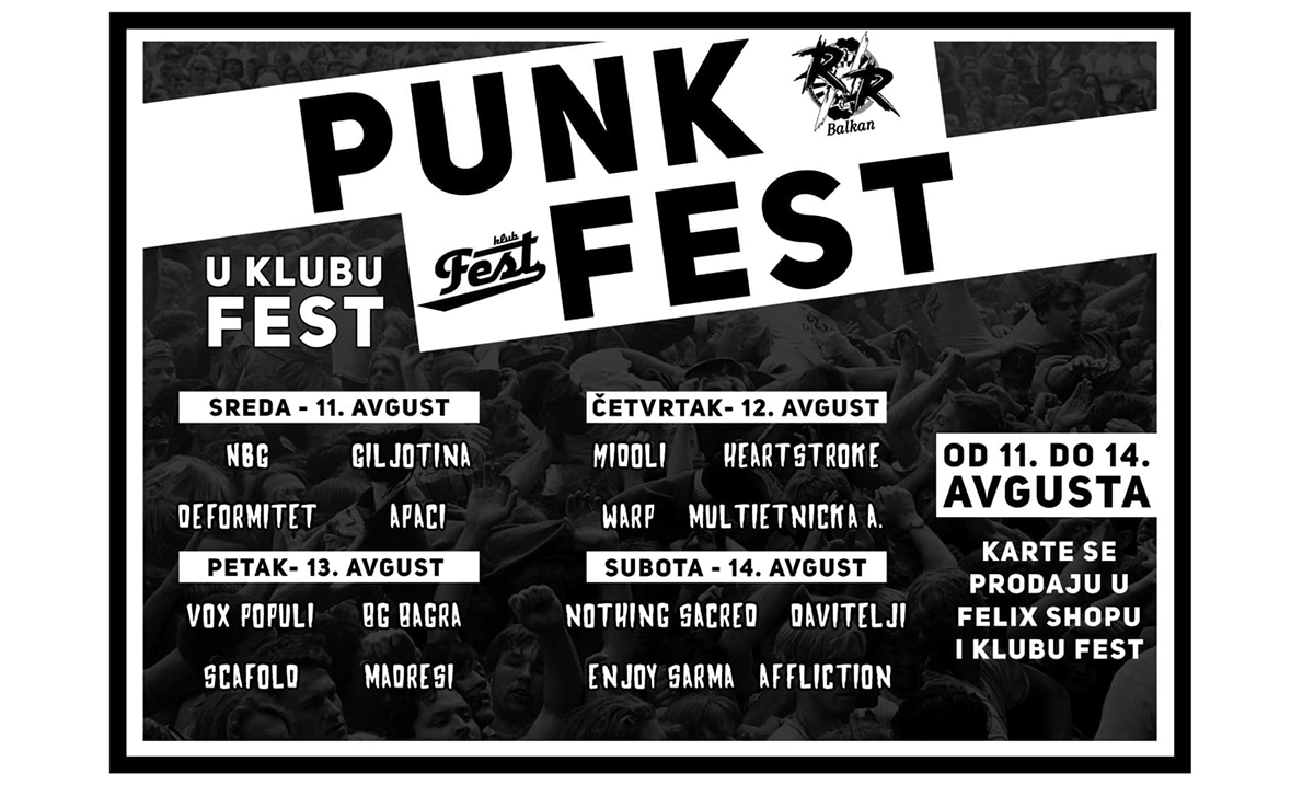 R’n’R Balkan prvi put organizuje punk festival koji će biti održan od 11. do 14. avgusta u klubu Fest u Zemunu.