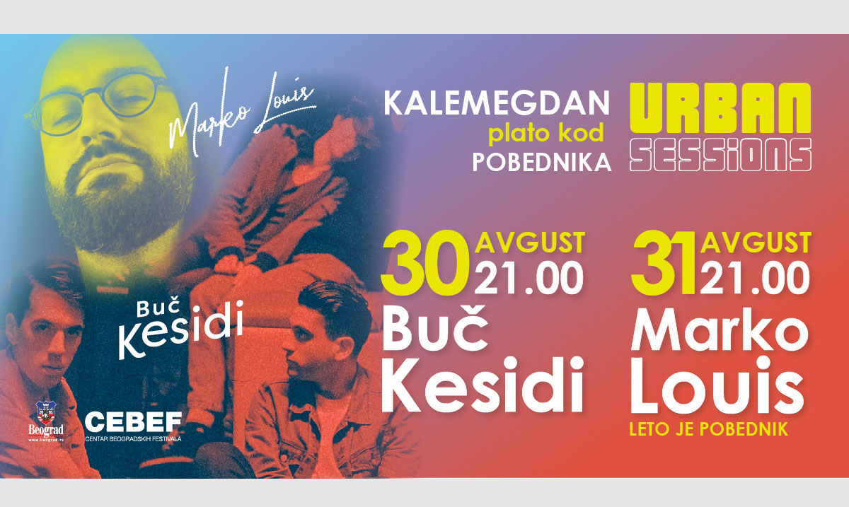 U poslednjim danima avgusta Centar Beogradskih festivala – CEBEF organizuje u Beogradu jedinstveni dvodnevni muzički događaj, URBAN SESSIONS, 30. i 31. avgusta na Kalemegdanu, na platou kod spomenika Pobedniku. Nastupiće najtraženiji izvođači novije generacije muzičara: bend Buč Kesidi (30. avgusta) i Marko Louis (31. avgusta). Oba nastupa počinju u 21 čas.