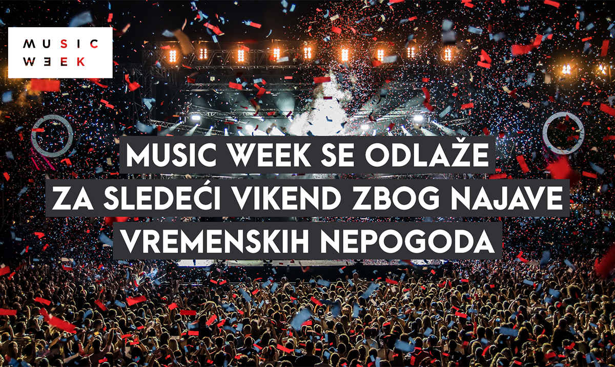 Zbog najave izuzetno loših vremenskih uslova, jake kiše i grada, praćenih niskim temperaturama, festival se odlaže za sledeći vikend, najavili su organizatori Belgrade Music Week-a.