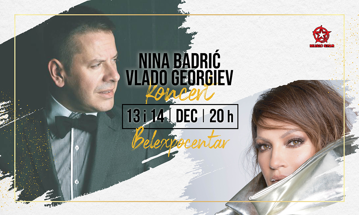 Najveće muzičke zvezde regiona i omiljeni pop vokali u Srbiji Nina Badrić i Vlado Georgiev održaće dva zajednička koncerta 13. i 14. decembra od 20 časova u Belexpo centru u Beogradu.