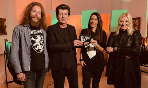 Urednica Braka Glavonjiç i novinar Stefan Jov_ic sa dobitnicima nagrade emisije Bunt Pesma godine Momcilo Baagic Bajaga i Maja Cvetkovic E play (1)