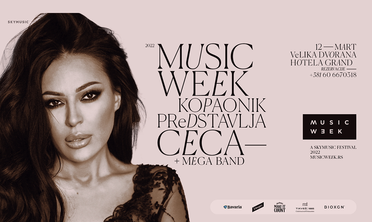 Samo još dva dana ostala su do početka šestog izdanja Kopaonik Music Week festivala. Na najpoznatijoj srpskoj planini, u veliko sali hotela Grand, 11. marta nastupiće Saša Matić, dok će ovo veče otvoriti Nenad Cvijetić. Već narednog dana, odnosno 12. marta festivalska publika imaće priliku da uživa uz Cecu Ražnatović, ali i Mega bend koji će pre Cecinog nastupa zagrejati atmosferu. Festivalska vrata biće otvorena za publiku od 21:30.