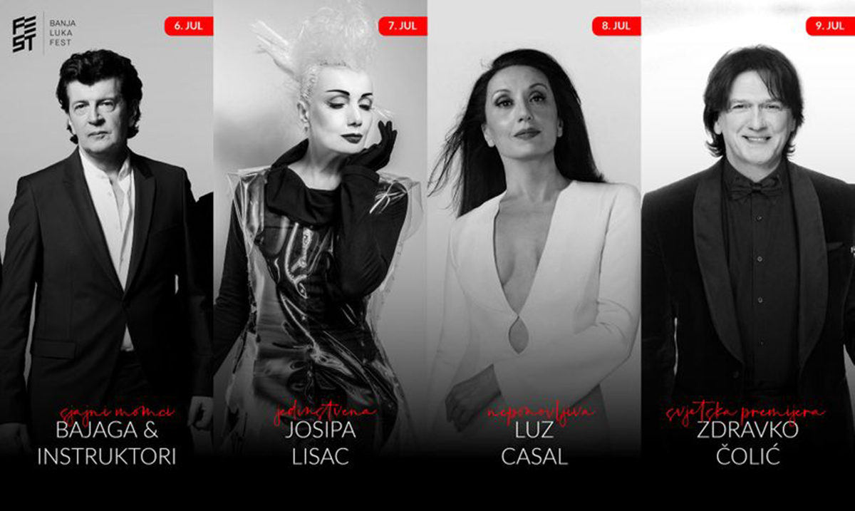 Vanvremenska muzička diva, Josipa Lisac nastupiće druge večeri Banja Luka Fest-a 7. jula, dok će treće festivalsko veče, 8. jula biti rezervisano za svetski poznatu, špansku muzičku zvezdu Luz Kasal, koja je poznata po čuvenim muzičkim temama iz filmova Pedra Almodovara, pre svih „Piensa En Mi“ i „Un Ano de Amor“ iz kultnog filma „Visoke potpetice“.