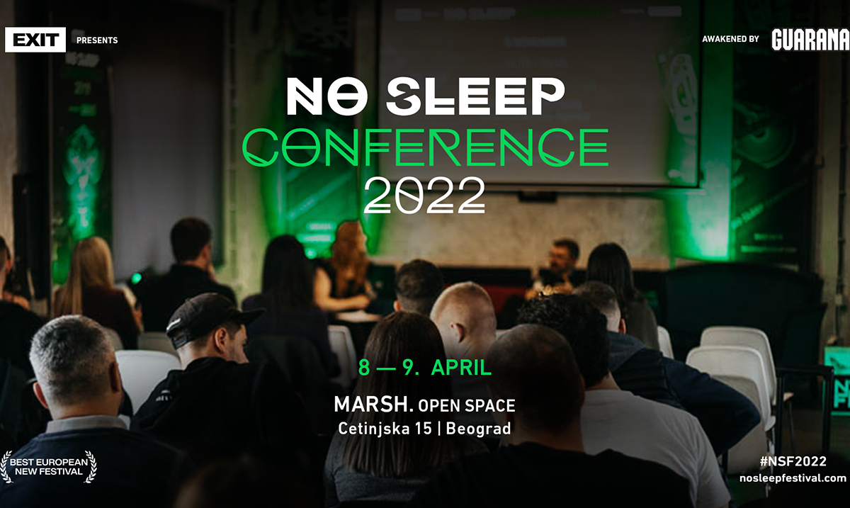 Objavljenom programu za specijalno prolećno izdanje No Sleep festivala, koje predvode Nina Kraviz, Stephan Bodzin, Sébastien Léger, Agents Of Time, DJ Tennis, DVS1 i DJ Bone, EXIT tim dodaje sada već tradicionalnu No Sleep konferenciju! Konferencija, koja je deo proslave titule za Najbolji novi evropski festival, biće održana 8. i 9. aprila u Marsh Open Space u Beogradu, i donosi najaktuelnije teme u vezi sa muzičkom industrijom, kao što su NFT, „cancel“ kultura, mentalno zdravlje mladih, nove tendencije u savremenoj muzici, post-kovid iskustva i očekivanja celokupne muzičke industrije u 2022, kao i specijalizovane muzičke radionice! Ulaz je slobodan.