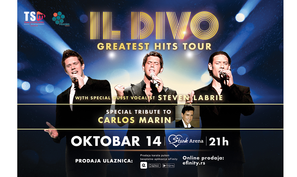 Internacionalna muzička svetska atrakcija, ansambl IL DIVO, održaće u toku ove, 2022. godine, svoje nezaboravne koncerte u 60 izabranih gradova širom sveta . Naziv turneje je “IL DIVO – NAJVEĆI HITOVI!“