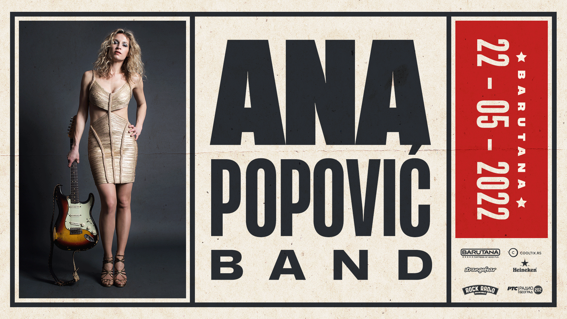 Čuvena blues gitaristkinja i pevačica Ana Popović nastupiće sa svojim bendom u nedelju 22. maja, od 20 časova, u okviru evropske turneje na kojoj promoviše svoj poslednji album „Live for Live“. Svoj povratak u rodni grad i proslavu dve decenije na sceni Ana Popović sa radošću najavljuje i kaže da su joj naročito dragi koncerti u Beogradu, budući da se ne dešavaju baš često.