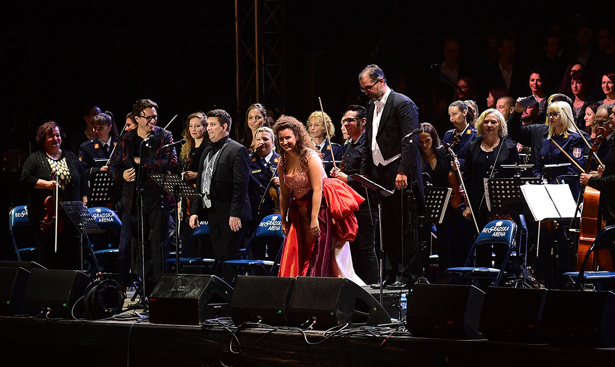 Već oko 20 časova na Ušću se okupilo preko 10.000 ljudi, iščekivajući izvedbu više puta pomeranu zbog vremena – kantatu „Karmina Burana“. Na impozantnoj bini jedno od najpoznatijih klasičnih dela u istoriji izvelo je više od 300 muzičara, hora i orkestra Srpskog narodnog pozorišta i Umetničkog ansambla Stanislav Binički“, kojima je dirigovao maestro Aleksandar Kojić, dok su solisti bili sopran Marija Jelić, tenor Stevan Karanac i bariton Vasa Stajkić