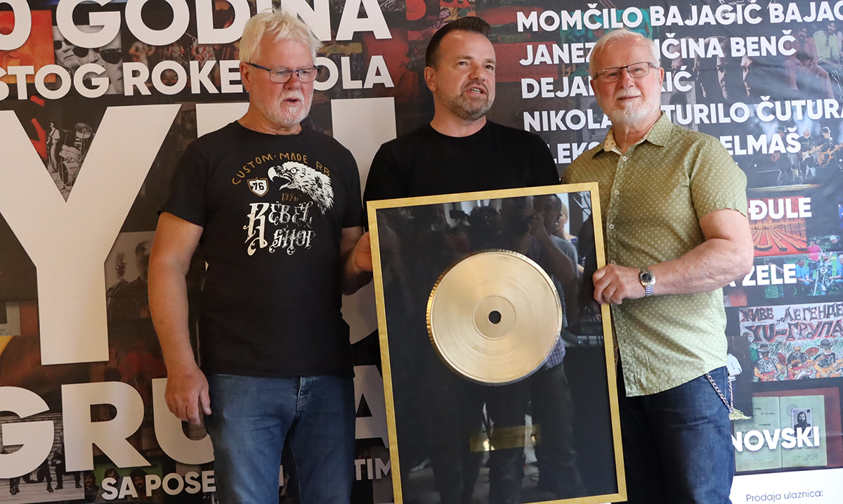 Iznenađenje za braću Jeliće je ZLATNA PLOČA koju im je dodelio Vladimir Graić direktor PGP RTS za prvih 50 godina karijere: