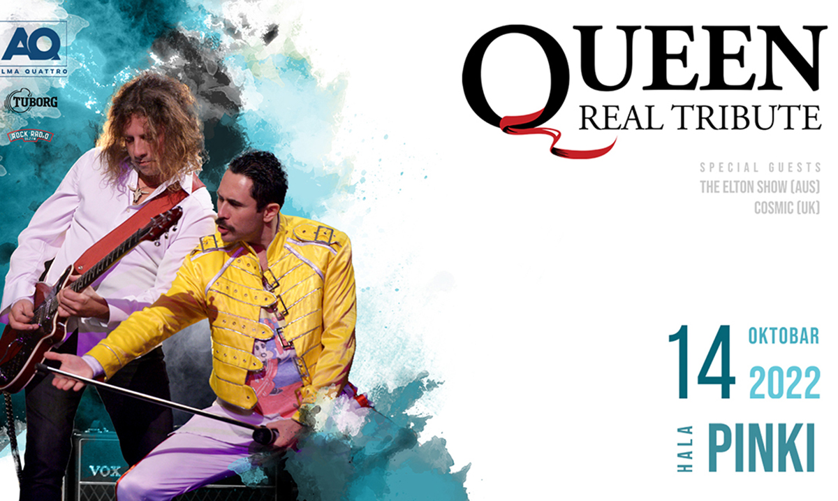 Nakon nekoliko stotina nastupa i uspešnih turneja širom sveta, naš Queen Real Tribute, jedan od najboljih svetskih Queen tribjut bendova, nastupiće u petak, 14. oktobra 2022. godine u 20 sati u Velikoj sali Hale Pinki u Zemunu uz specijalne goste – neverovatni i ekstravagantni COSMIC (UK) i direktno iz Melburna The Elton Show – C. J. Marvin (AUS), za koga je i sam Elton John rekao: „Ti si najbolji JA koga sam ikada čuo“.