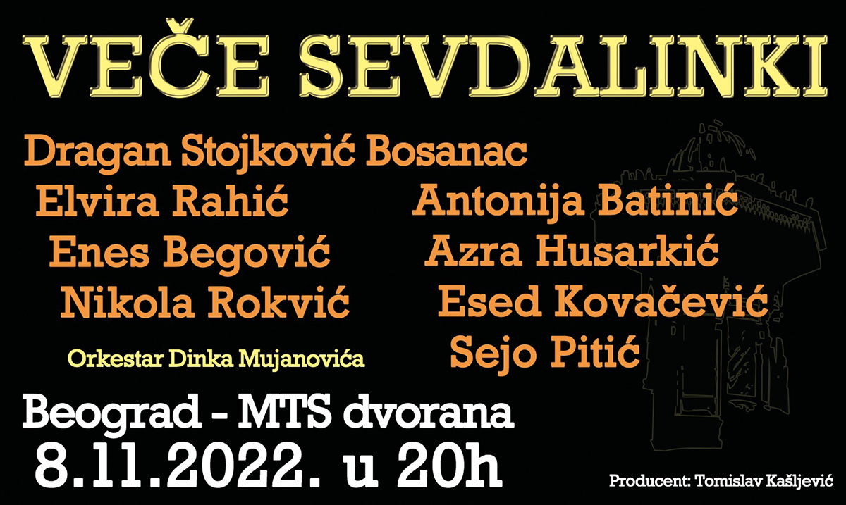 Tradicionalni koncert „Veče sevdalinki“ biće održan 8. novembra sa početkom u 20h u mts dvorani.