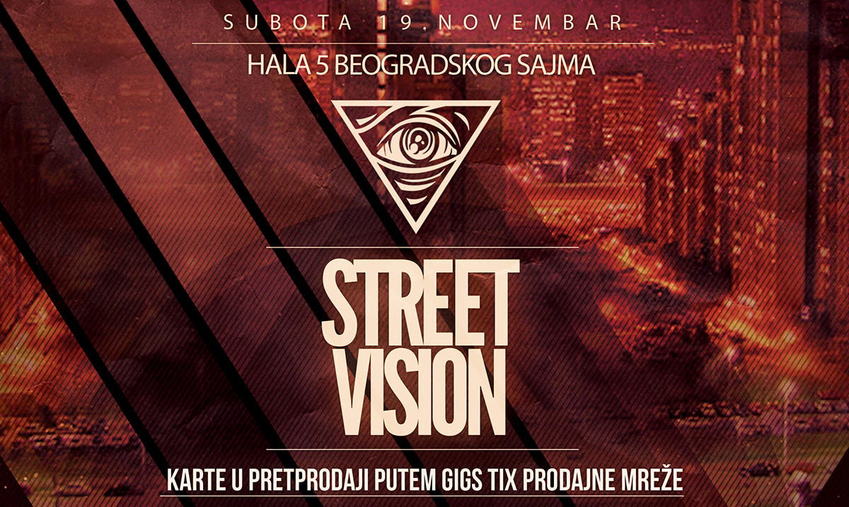 Veliki hip hop spektakl „Street Vision“, koji će okupiti najveće zvezde regionalne rap, trap, drill scene, biće održan u subotu, 19. novembra u Hali 5 Beogradskog sajma. Tom prilikom zajedno na sceni će se naći izvođači koji važe za trenutno najpopularnije muzičare na našim prostorima i čije pesme ne izlaze iz trendinga – trap senzacija Crni Cerak i Lacku, regionalne legende ovog žanra Fox i Surreal, popularni reper Mili, „najtvrđi“ zagrebački dvojac 30zona, jedan od najpopularnijih sarajevskih repera Cunami, TNG, Micka Lifa, Grca, Designerica i Pljugica i mnogi drugi.