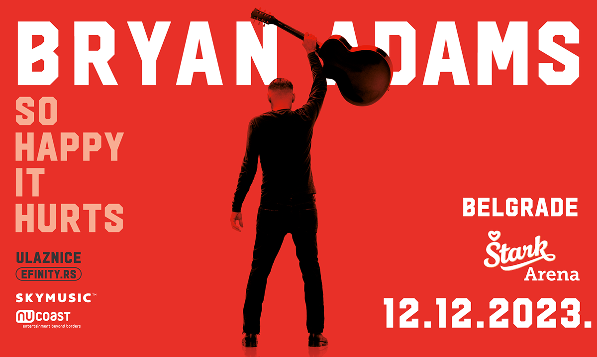 Skymusic sa ponosom predstavlja Brajana Adamsa, čuvenog rok pevača, tekstopisca, gitaristu, basistu i producenta, koji će u okviru svetske turneje pod nazivom „So Happy It Hurts“ nastupiti pred domaćom publikom 12. decembra u beogradskoj Štark Areni! Ulaznice za koncert moći će da se nađu već od petka, 24. marta, putem sajta efinity.rs, preko besplatne aplikacije eFinity, u TC Rajićeva (I sprat) i na blagajni Štark Arene.