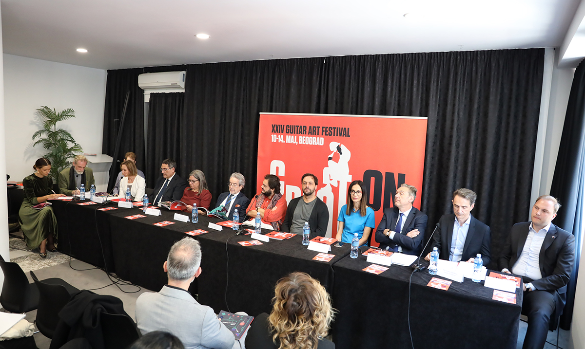 The press conference on the occasion of the beginning of the 24th Guitar Art festival was held in the press room of the MTS hall.Konferencija za medije povodom pocetka 24. Guitar Art festivala odrzana je u Press sali MTS dvorane.