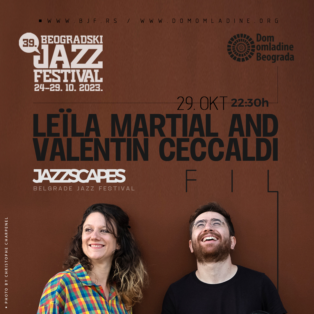 Francuskinja Lejla Marsijal će u sali Amerikana Doma omladine Beograda nastupiti u 22.30 časa. Najoriginalnija vokalna interpretatorka na evropskoj muzičkoj sceni, istražuje veze modernog džeza sa francuskim folklorom, romskom tradicijom i muzikom Pigmeja. U duu FiL sa violončelistom Valentinom Sekaldijem nastavlja putem započetim u triju Baa Box, manifestujući lakoću izvođenja i virtuoznost, kreirajući neobične predstave u divljoj improvizaciji. Lejla Marsijal među uzorima ističe pevače Džin Li, Bobija Mekferina, Andreasa Šerera, Bjork i Mariju Žoao, instrumentaliste Erika Dolfija i Mederika Kolinjona, kao i sastav Magma.