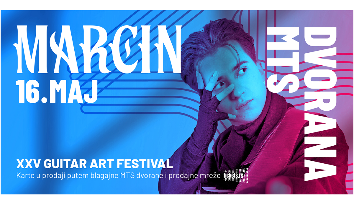Nakon rasprodatih koncerata i ogromnog uspeha njegovih turneja po Americi, Japanu, Kanadi i Evropi, nova gitarska zvezda i najveći talenat našeg vremena Marcin stiže po prvi put u Beograd! Koncert će se održati 16. maja u MTS dvorani u okviru 25. Guitar Art Festivala. Ulaznice su u prodaji u okviru prodajne mreže Tickets.rs i na blagajni MTS dvorane.