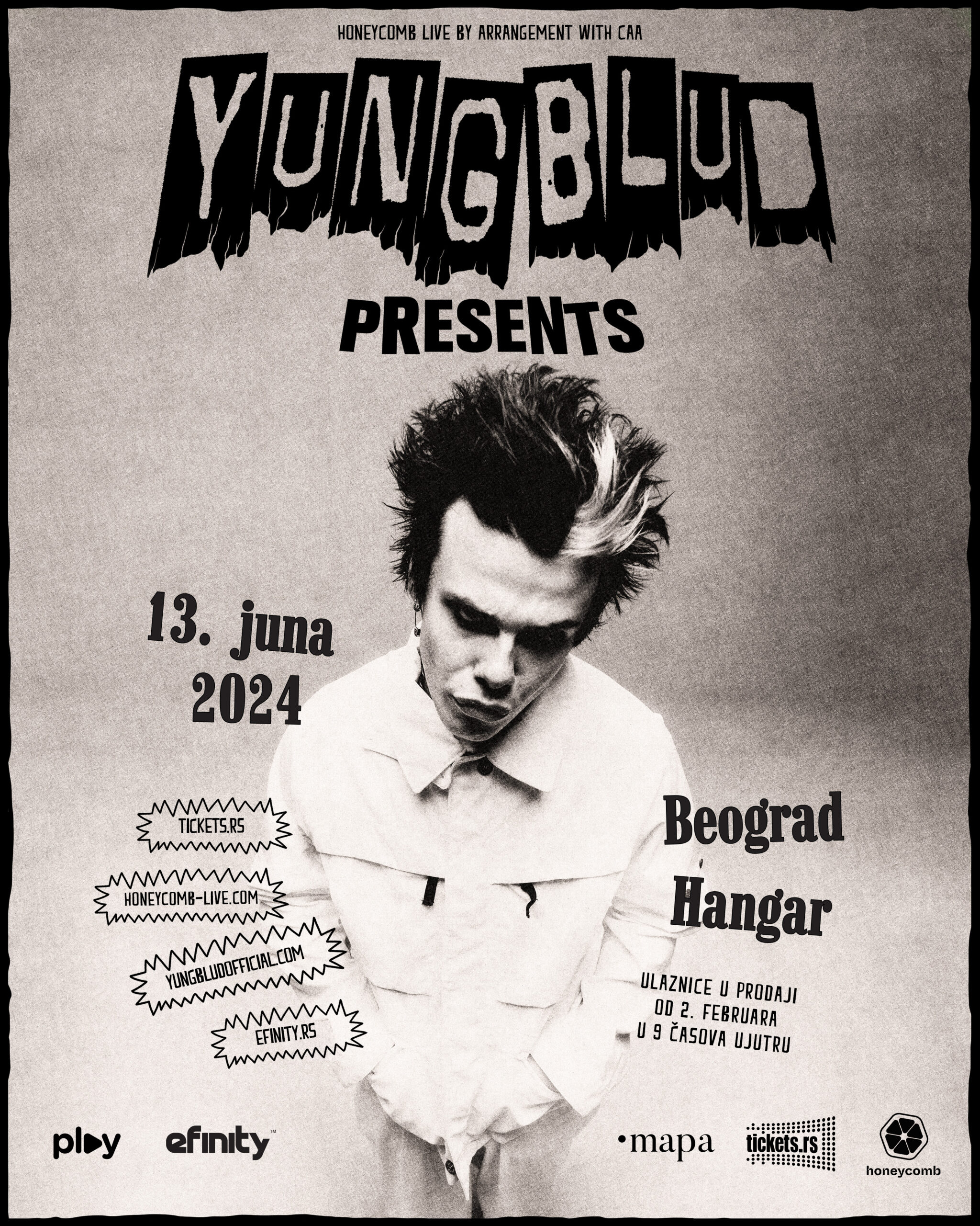 Kao umetnik koji se nesumnjivo istakao kao glas generacije Z, YUNGBLUD neprestano istražuje nove teritorije zvuka i koristi svoju muziku kako bi ujedinio i osnažio mlade ljude. Poznat po svojoj zaraznoj energiji i pankerskom stavu, čvrsto je utemeljio plesno orijentisani rok u 21. veku. Pored nove muzike koju će predstaviti u narednom periodu, on zvanično najavljuje i svoj prvi nastup u Srbiji! YUNGBLUD se polako sprema da oduševi beogradsku publiku na koncertu koji će se održati 13. juna u Hangaru!